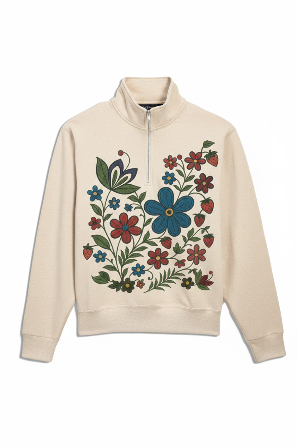 Often the first berry to bloom in spring, it represents renewal, hope, and new beginnings after a long winter. In Métis floral beadwork and textile traditions, the strawberry has long been woven gently alongside wildflowers, carrying stories of gratitude, resilience, and deep respect for the land.
